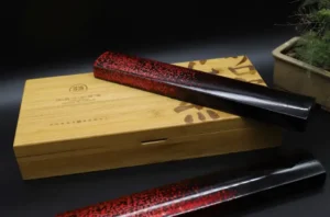 The Chinese lacquer paperweight combines the classic and solemn charm of Chinese lacquer with the elegant and upright quality of a paperweight. When gently placed on the paper, it prevents the paper from being flipped over, thus avoiding ink stains. This enables calligraphers and painters to concentrate more intently on their works, allowing them to write or paint with great fluency and ease, just like a dragon and a snake moving gracefully. With a powerful, beautiful, robust and elegant style, one can appreciate the ingenuity and wisdom within. It is comparable to the calligraphy styles of Liu Gongquan (known for his “bone-like” strokes) and Yan Zhenqing (famous for his “muscular” strokes), demonstrating the conveyance of strength even in the tiniest brushstrokes.